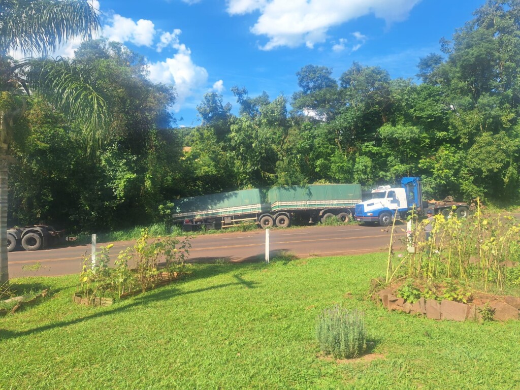 Bitrem sai da pista e colide contra árvores na SC-283